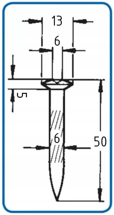 - Średnica zagłębienia w główce [z] 6 mm
