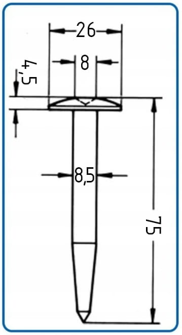 - Średnica zagłębienia w główce [z] 8 mm